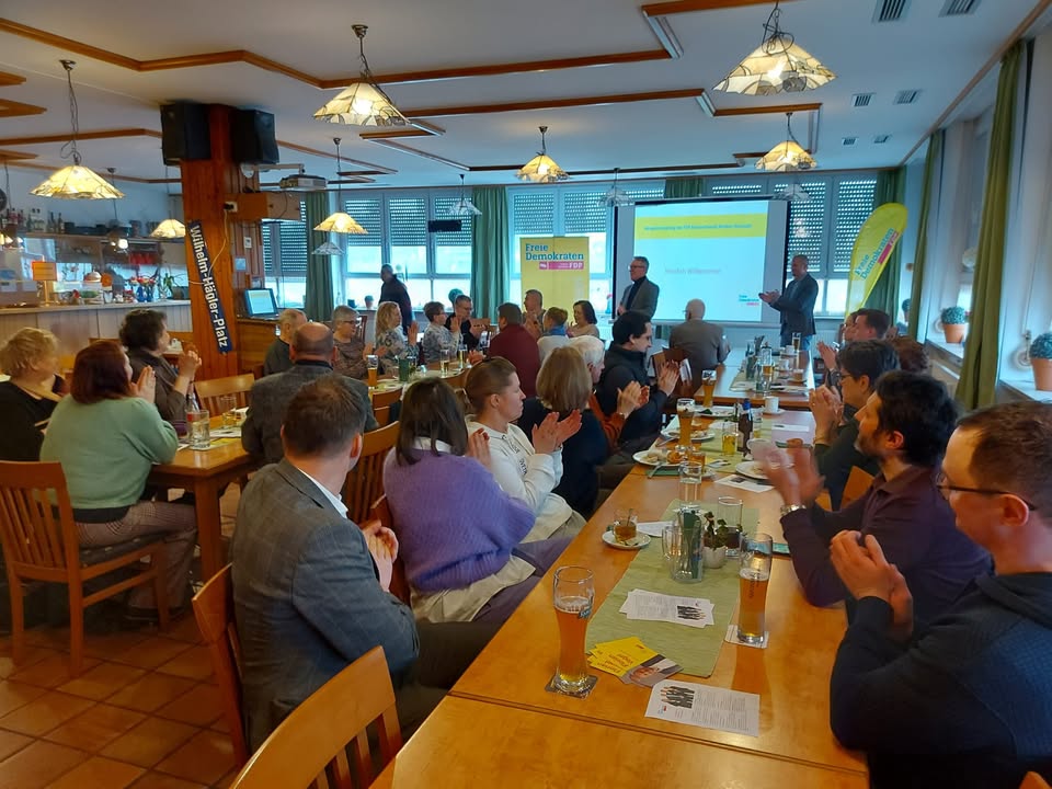 FDP-Neujahrsempfang im Schützenhaus 🎉 Unser Kreisverband lud Vereinsvertreter zu einem ordentlichen Weißwurst-Frühstück 🥨🍺 ein. Daneben gab es einen Vortrag über die Grundlagen der Vereinsbuchhaltung 🏦🧮. Unser OB-Kandidat Florian Vogel dankte allen Vereinen für ihr Engagement und ihren außerordentlichen Beitrag zu einer lebendigen Stadt Weiden.